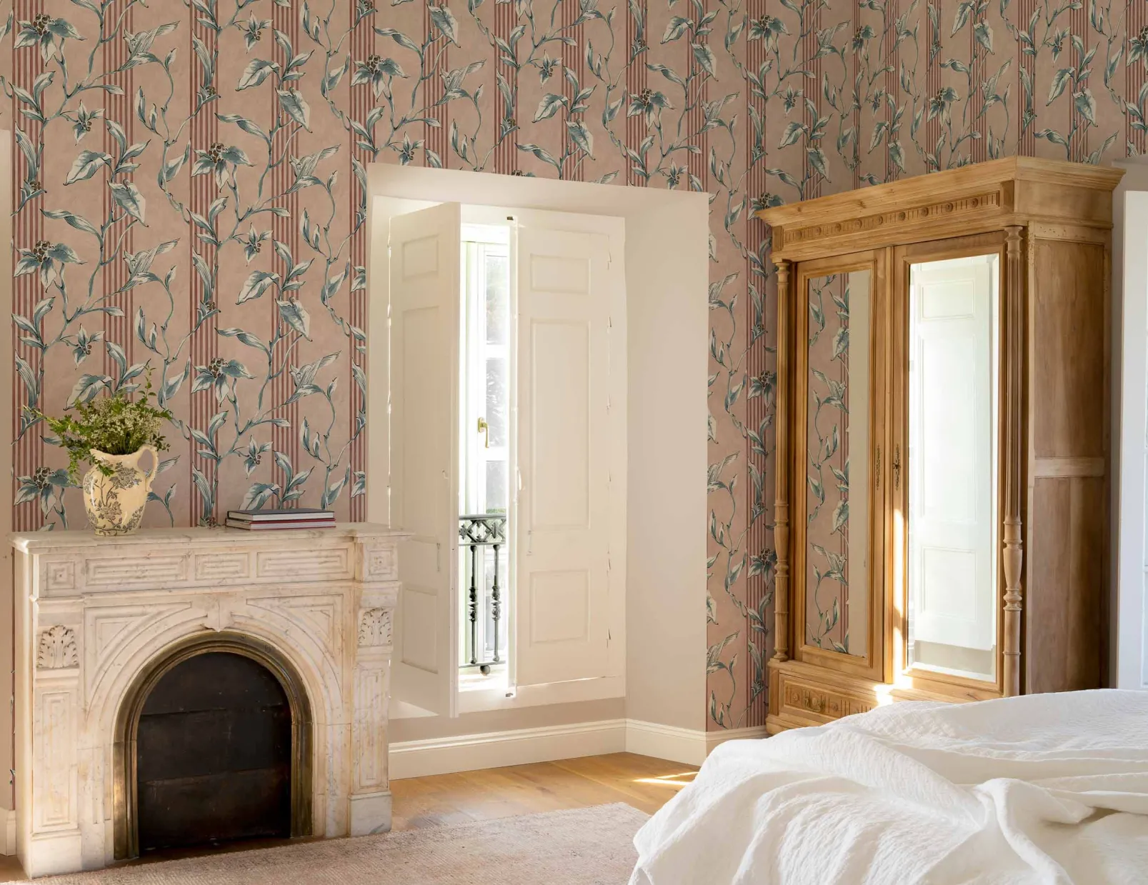 Trepadora Rosaceo de Coordonn es un papel pintado inspirado en texturas en tonos rosa/lila. Ágil trepadora de guirnaldas que buscan sin miedo la poderosa luz del sol.