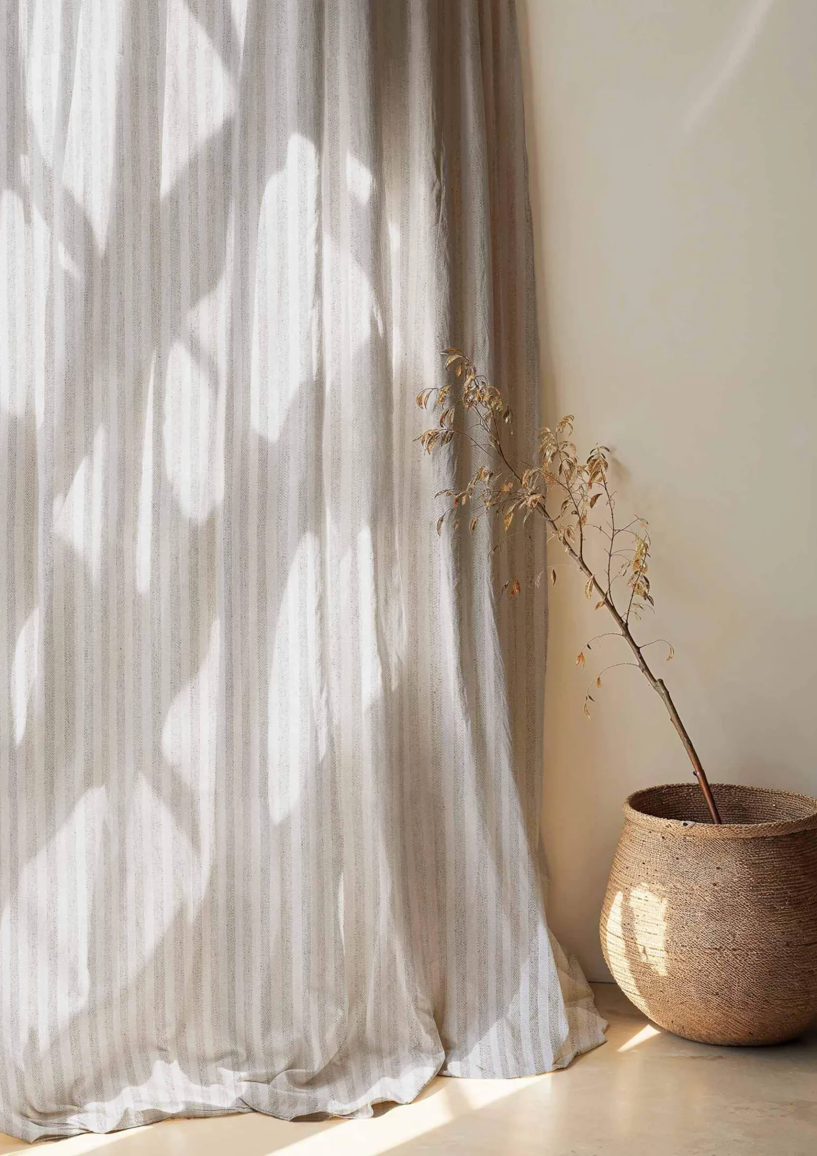 Tribal White de Coordonné es un diseño de rayas en beige/Nude de la colección Berber II.Textiles que celebran la identidad de los pueblos nómadas.