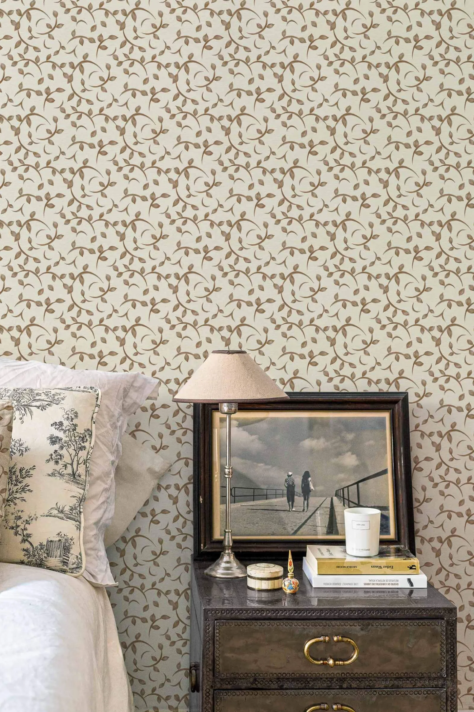 Twig Cacao de Coordonné es un papel pintado de inspiración vegetal en color Marrón. Juguetonas ramitas que bailan al son del viento.