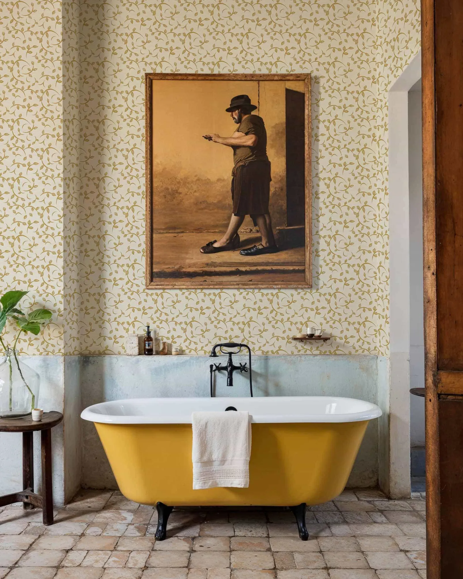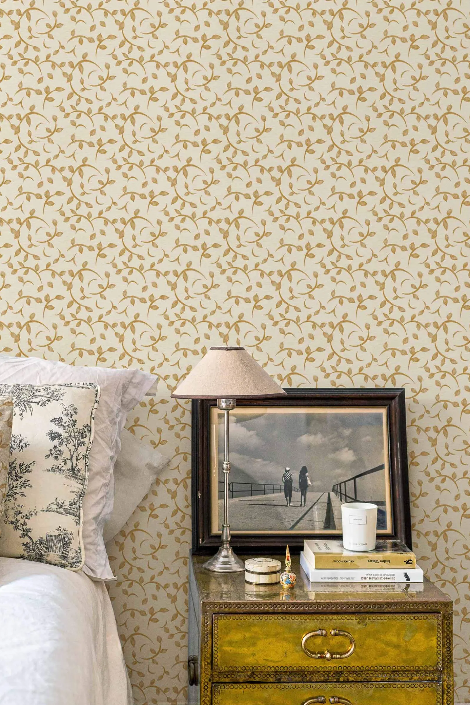 Twig Curry de Coordonné es un papel pintado de inspiración vegetal en color amarillo/naranja. Juguetonas ramitas que bailan al son del viento.
