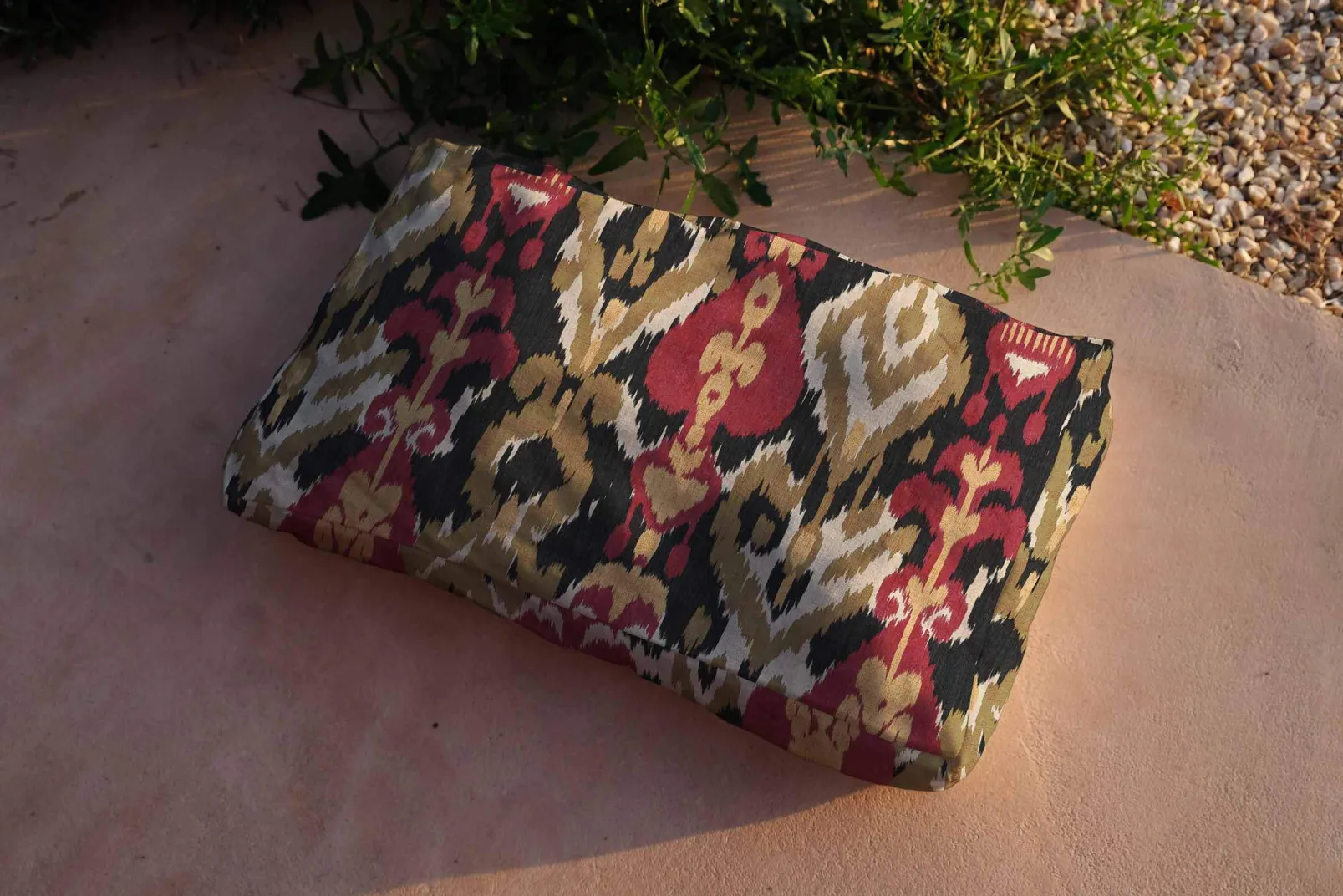 Uzbek Black de Coordonné es un diseño inspirado en las texturas en rojo/vino de la colección Ikart Outdoor II. El legado textil de la ruta de la seda en la confección de elegantes caftanes.