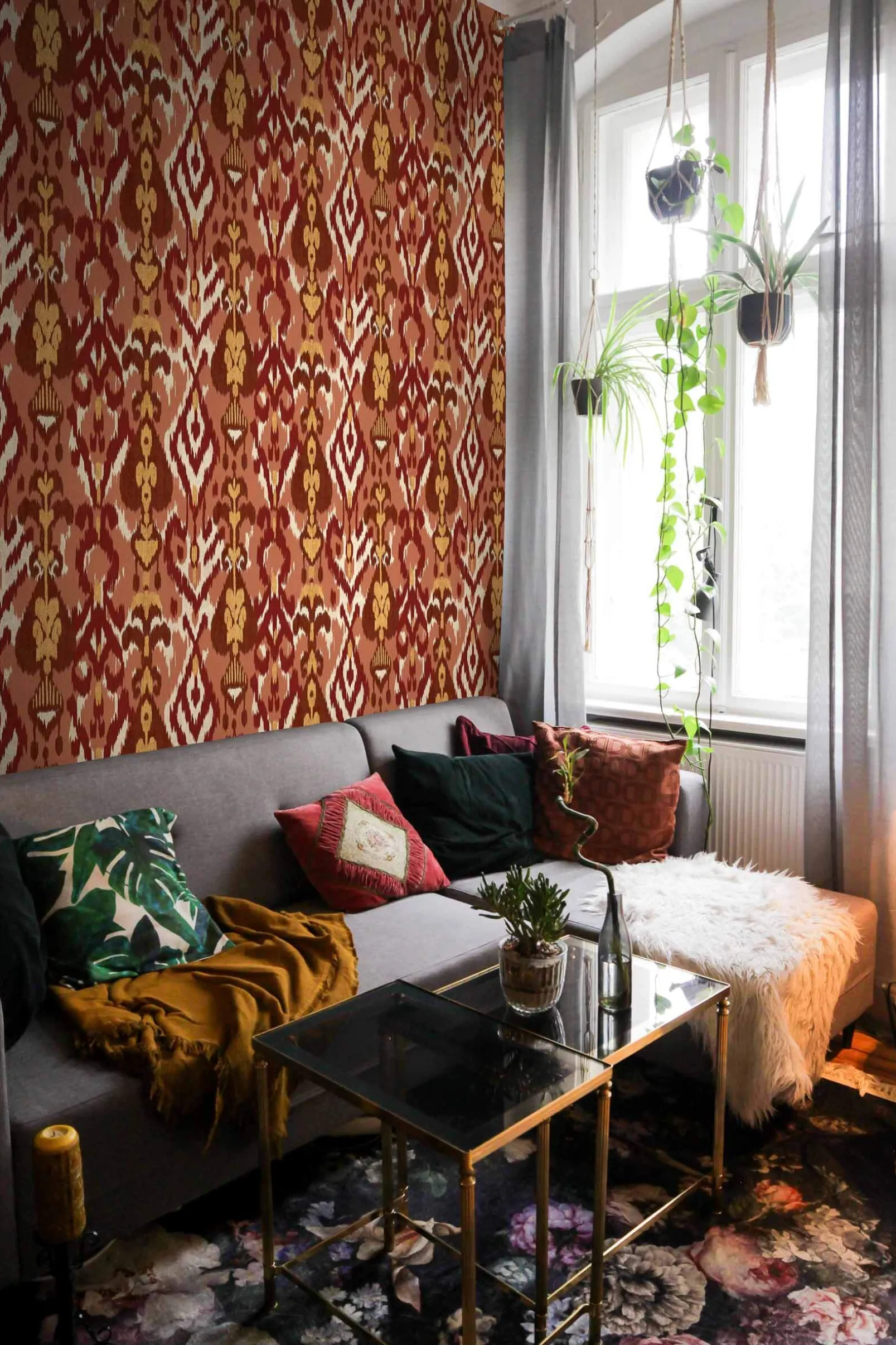 El papel pintado Uzbek Clay de Coordonné es un diseño de texturas en tonos rosa/lila. Túnicas confeccionadas para la realeza Akan con tiras de algodón.