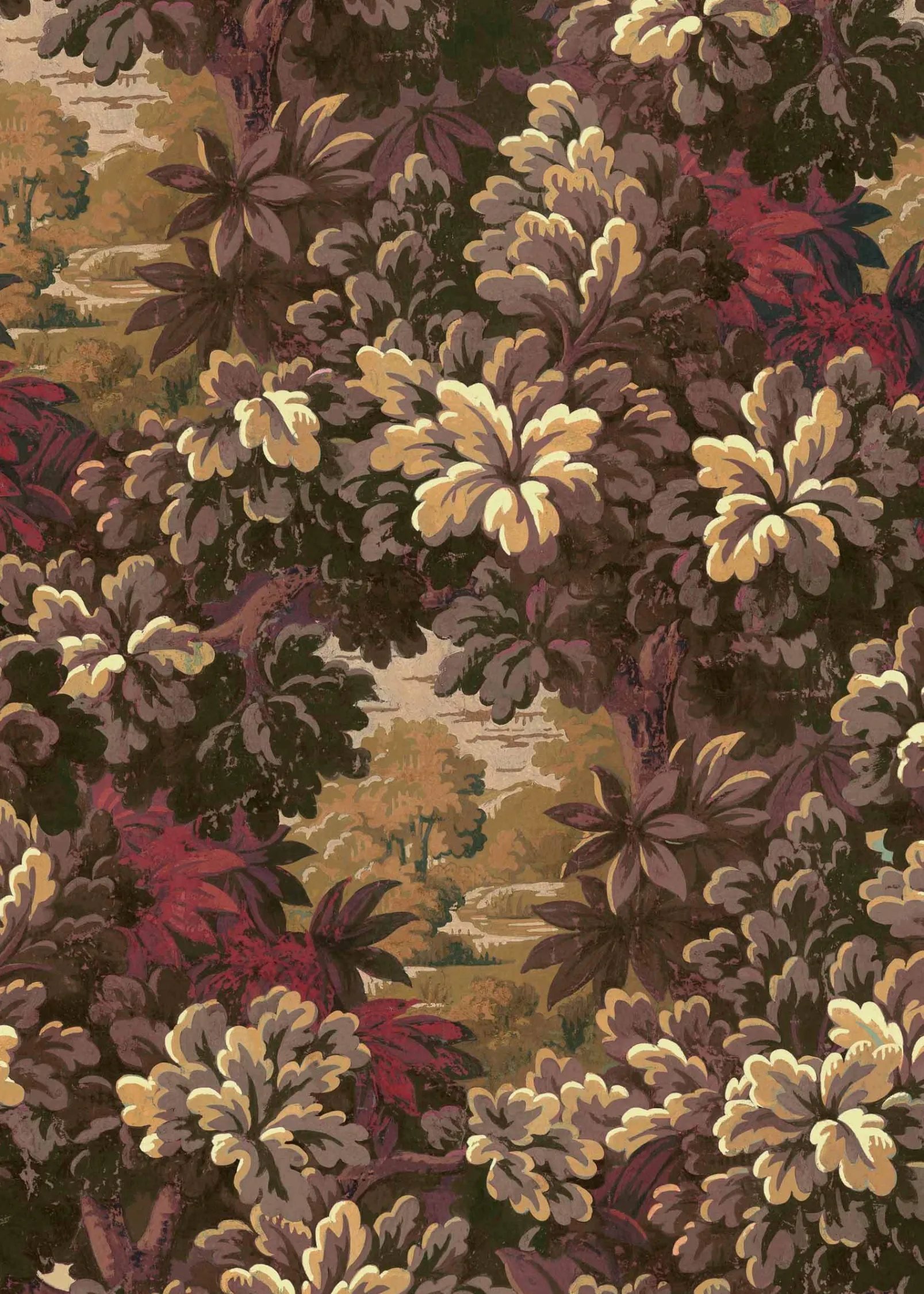 Verdure 16TH Vermillion de Coordonné es un papel pintado de inspiración vegetal en color Rojo/Vino. Un tapiz de elegantes brotes de árboles que crecen con energía y entusiasmo.