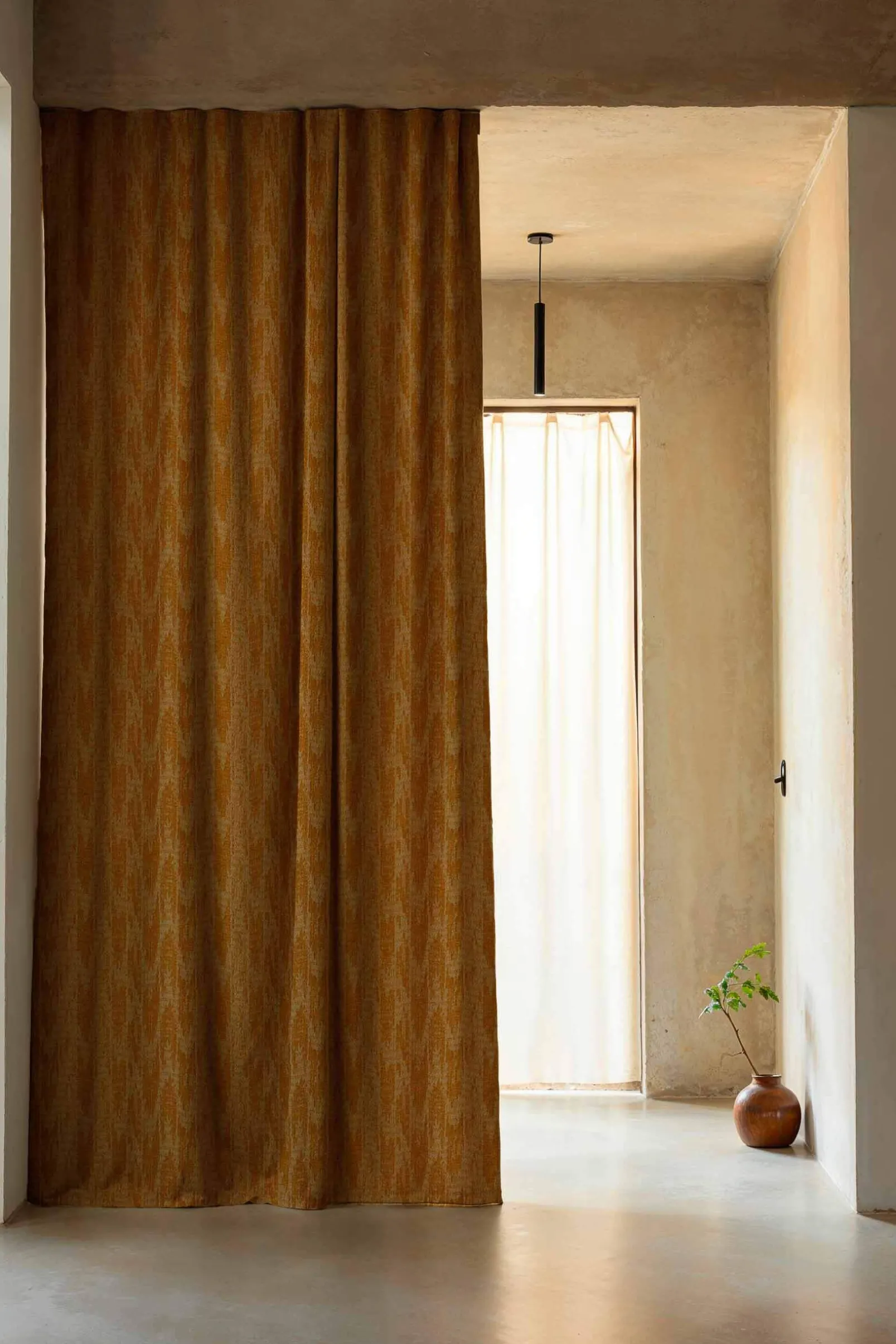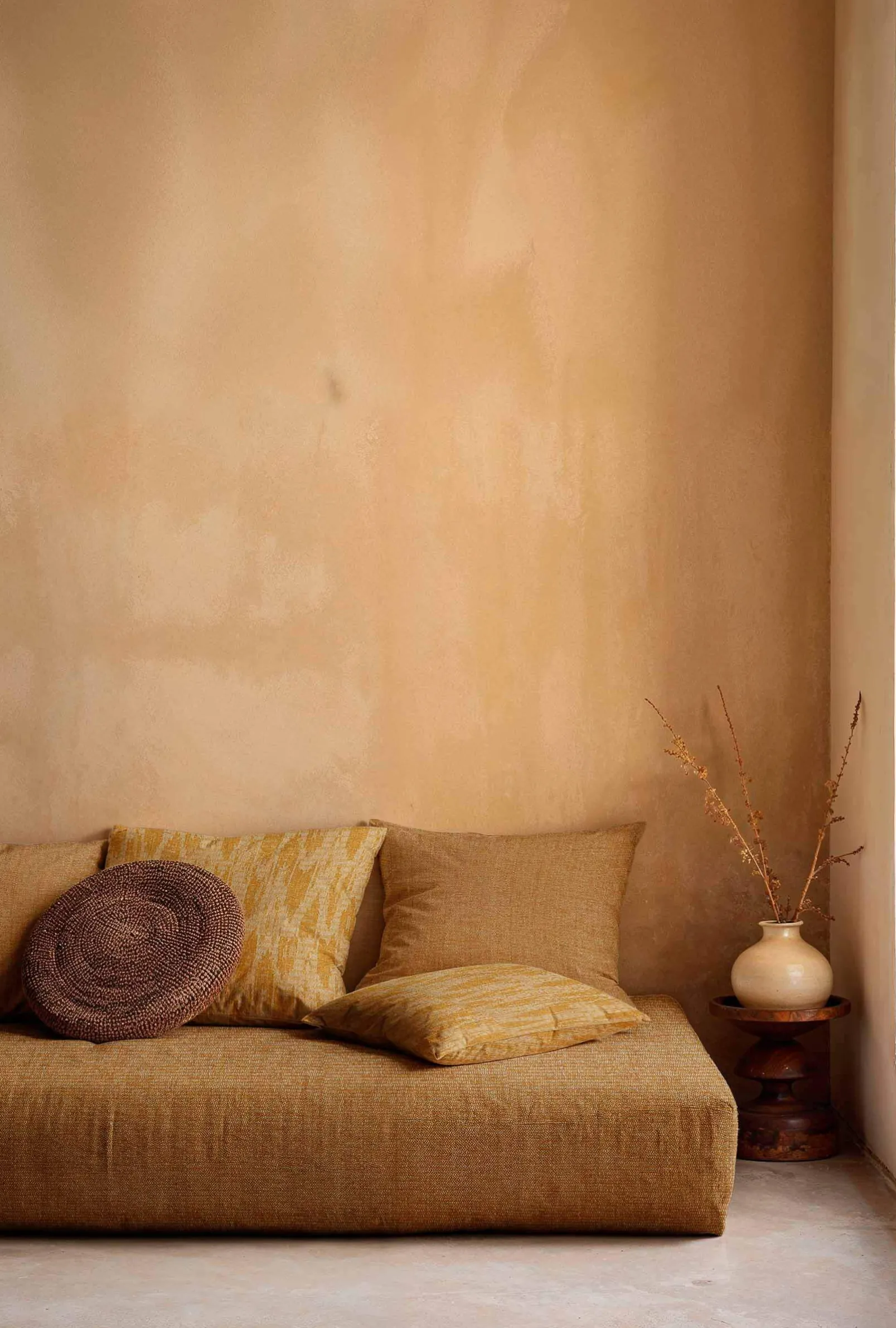 Wave Dune Curry de Coordonné es un diseño de textura en amarillo/naranja de la colección Berber I. Ondulación simbólica de las regiones áridas, el ritmo de la vida.