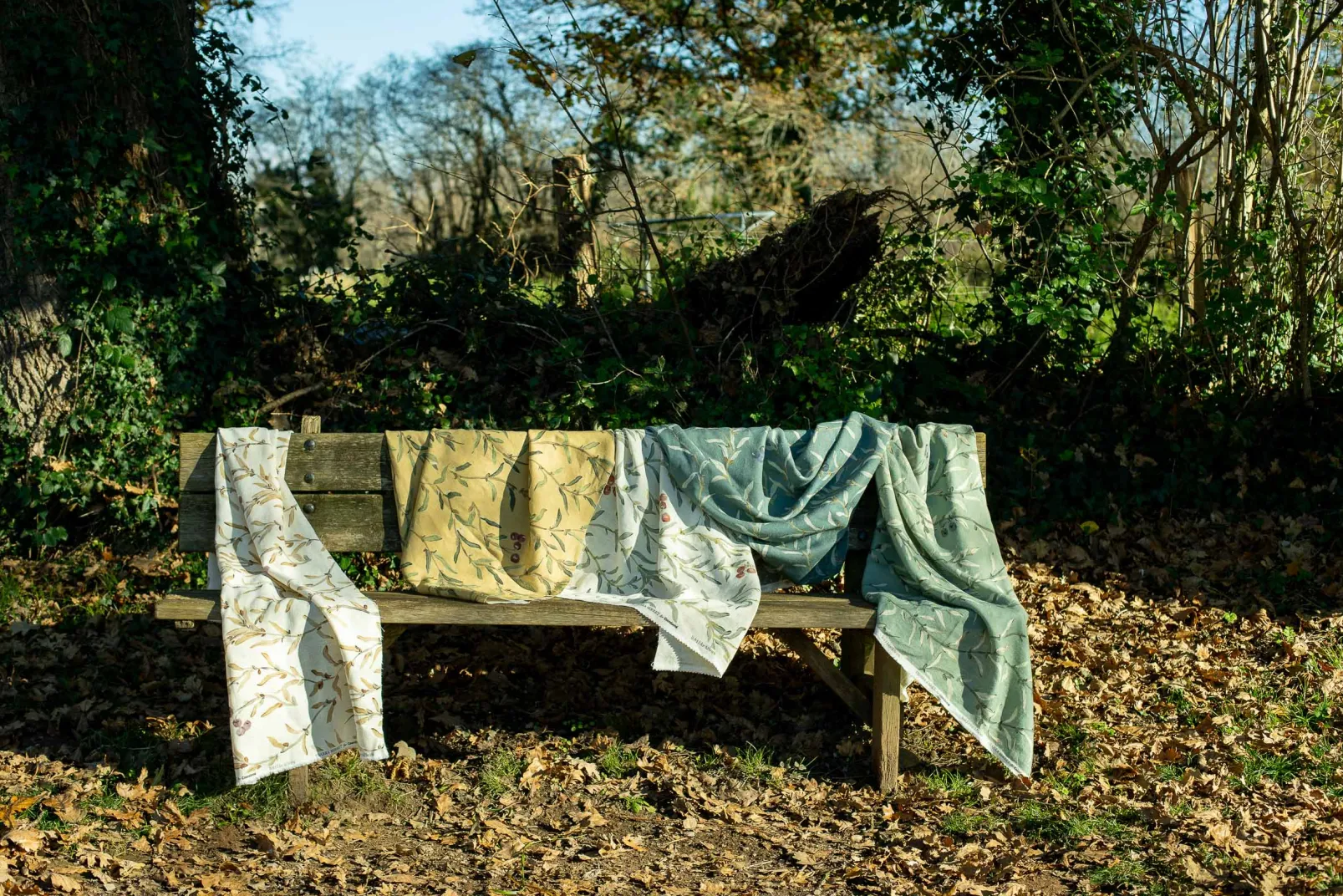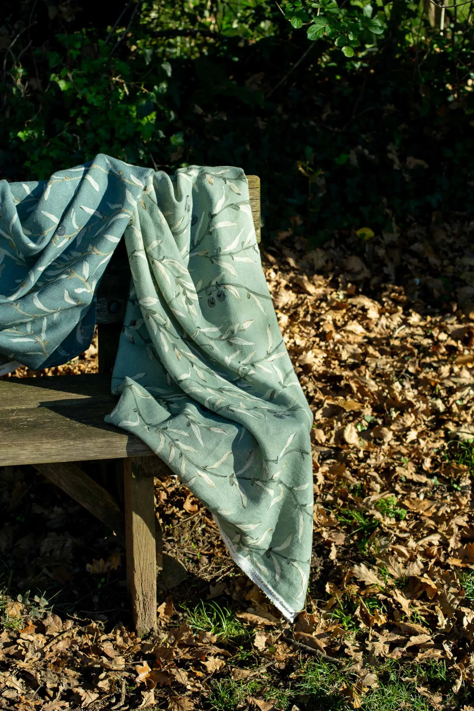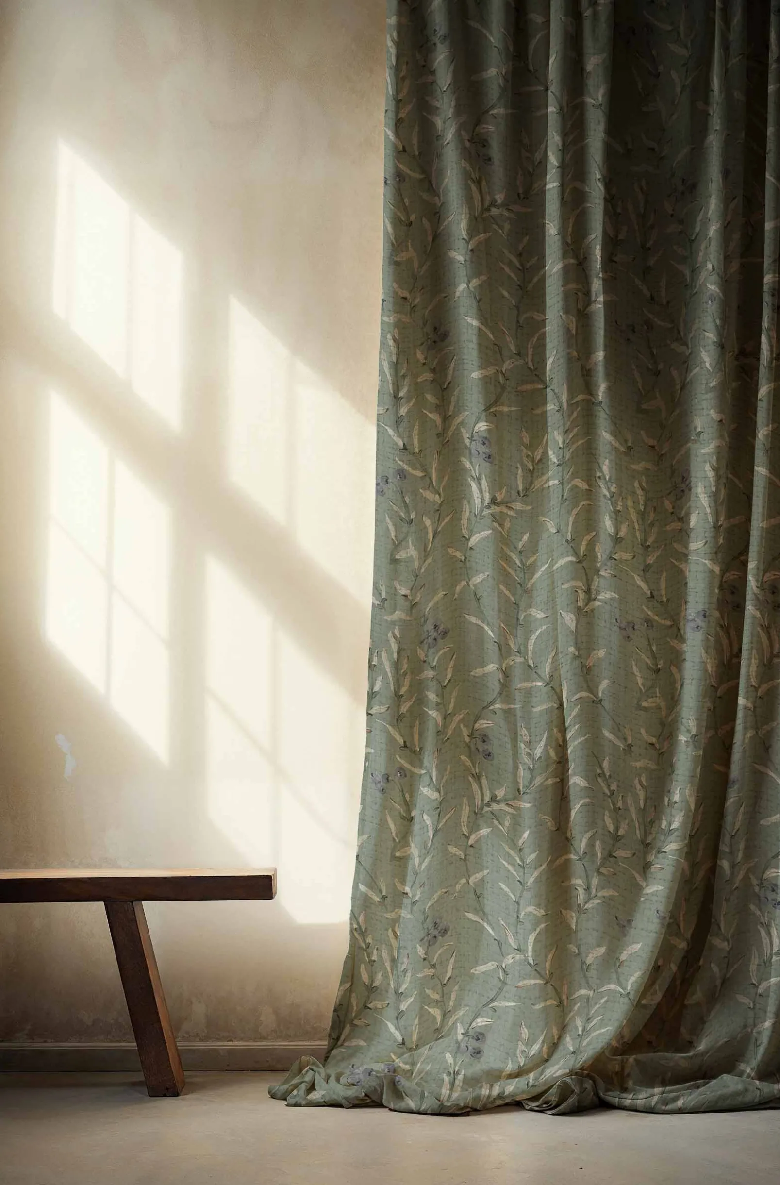 Wild Blackthorn Lagoon de Coordonné es un diseño floral en verde de la colección Cotswolds Fabrics. Irresistibles frutos destacan entre las delgadas y flexibles ramas de la zona de Somerset.