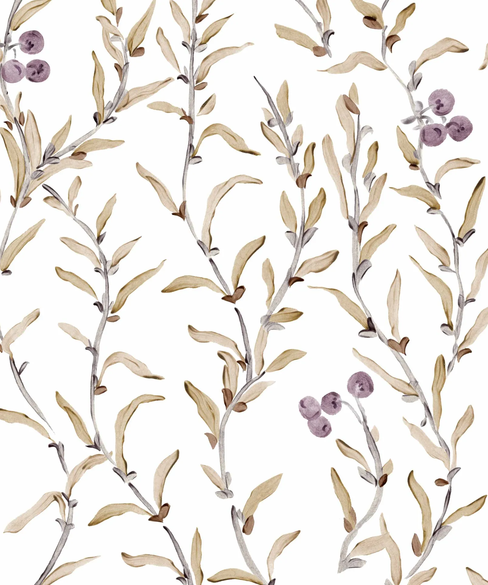 Wild Blackthorn Prune de Coordonné es un diseño floral en verde de la colección Cotswolds Fabrics. Irresistibles frutos destacan entre las ramas finas y flexibles de la zona de Somerset.