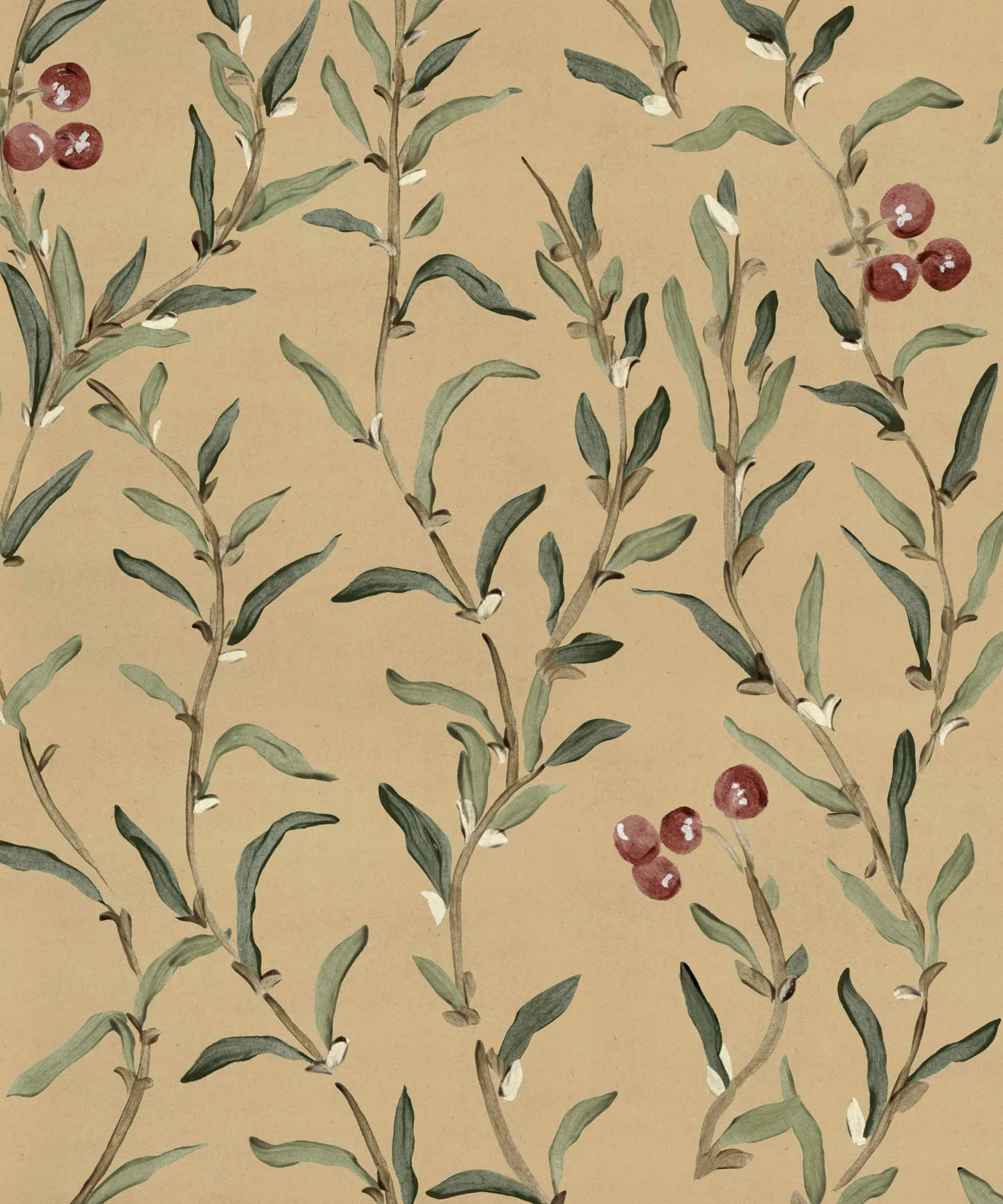 Wild-Blackthorn Sunny de Coordonné es un diseño vegetal en amarillo/naranja de la colección Cotswolds. Deliciosos frutos que aparecen entre ramas delgadas y flexibles cerca de Somerset.
