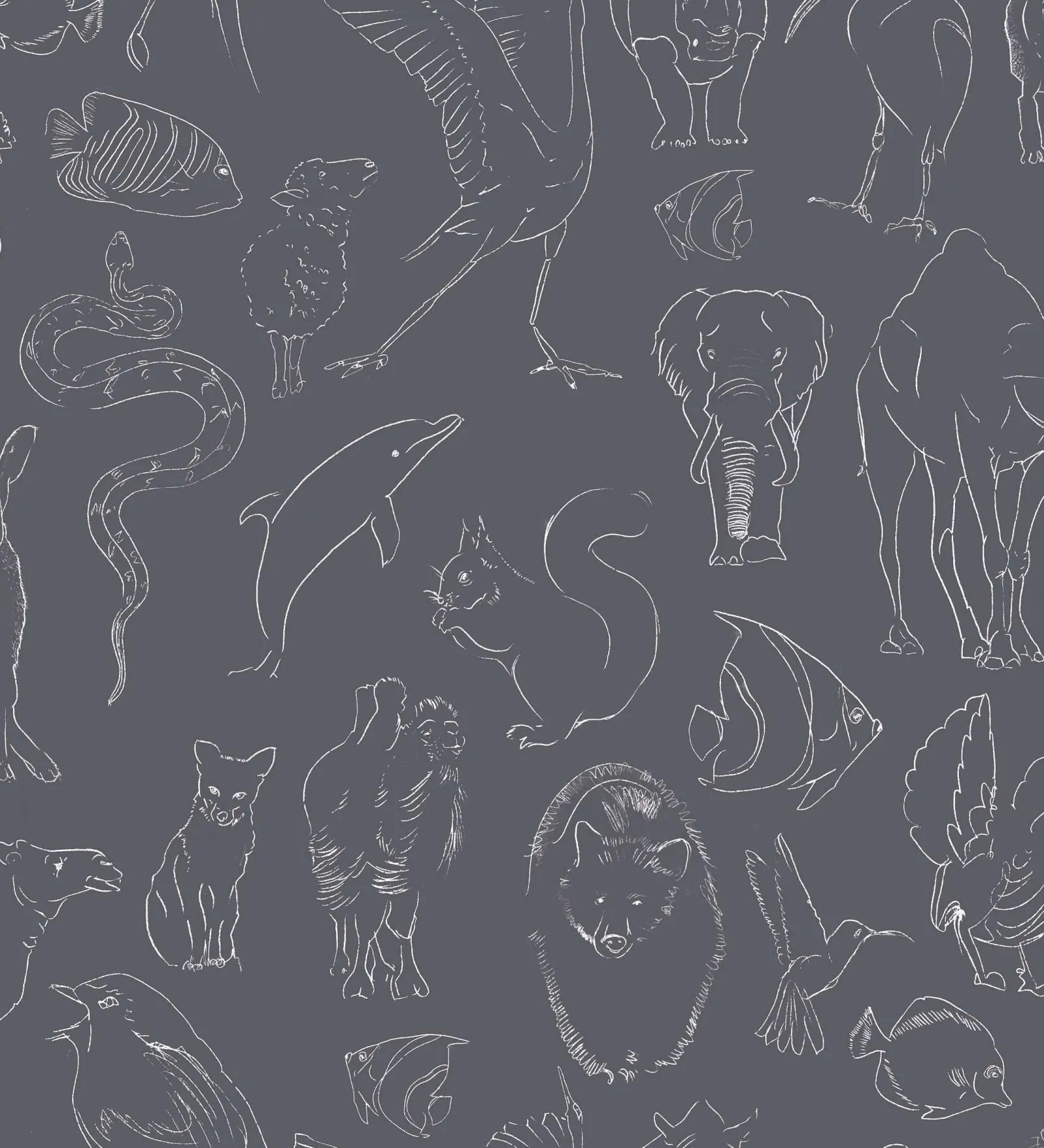 Papel pintado Zoology Chalk de Coordonné en un animal diseñado en tonos negros de la colección Random Kids.